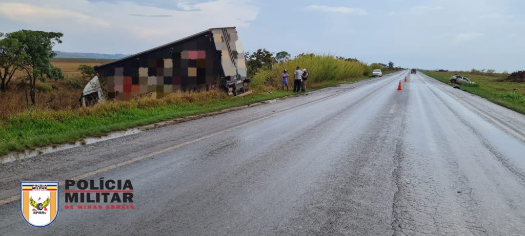 Quando a equipe PM chegou no local, lá estavam os veículos fora da pista, o condutor do caminhão e diversos curiosos. O condutor do veículo Onix já havia sido socorrido pelo SAMU de São Gotardo.