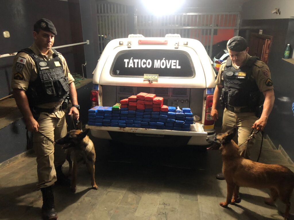 As cadelas Ária e Pandora realizaram buscas no local e encontraram o tonel com 90 quilos de maconha, duas balanças e duas facas, usadas para fracionar a droga. Todo o material foi apreendido e levado para a delegacia de Polícia Civil de Patos de Minas.
