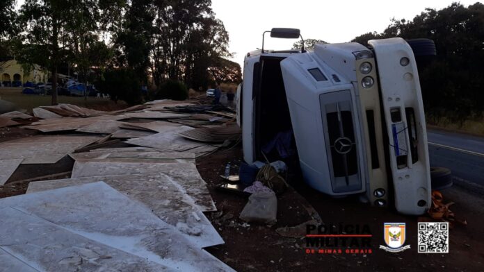 Com isso, a carreta tombou e parou às margens da rodovia ocupando parte da pista. Já a carga ficou espalhada fora da pista de rolamento. O motorista foi socorrido pela ambulância da empresa EPR Triângulo e levado para o hospital em Iraí de Minas.