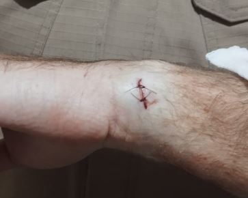 O policial ferido também foi atendido no hospital municipal, onde recebeu pontos no punho da mão esquerda.