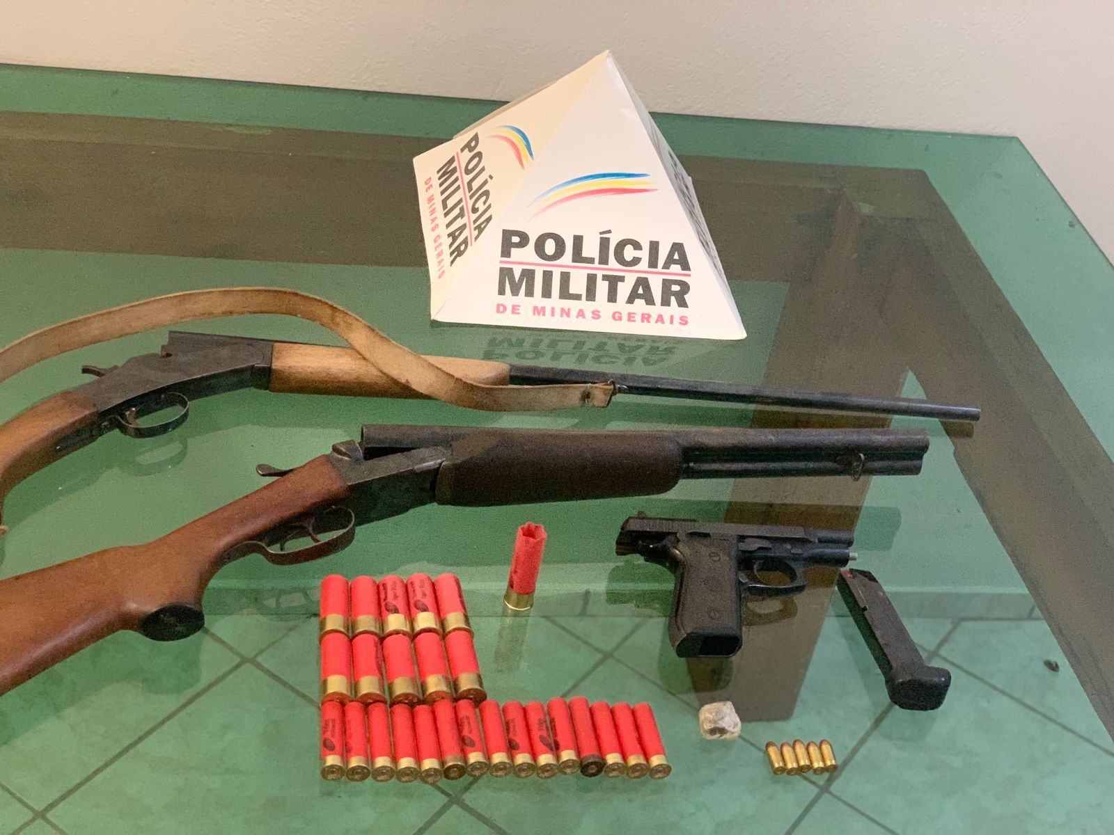 Em seguida, os policiais foram até um bar, na mesma região, e durante buscas no local encontraram três armas de fogo, sendo uma pistola 380, um rifle e uma escopeta calibre 12. Junto com as armas estavam trinta cartuchos.