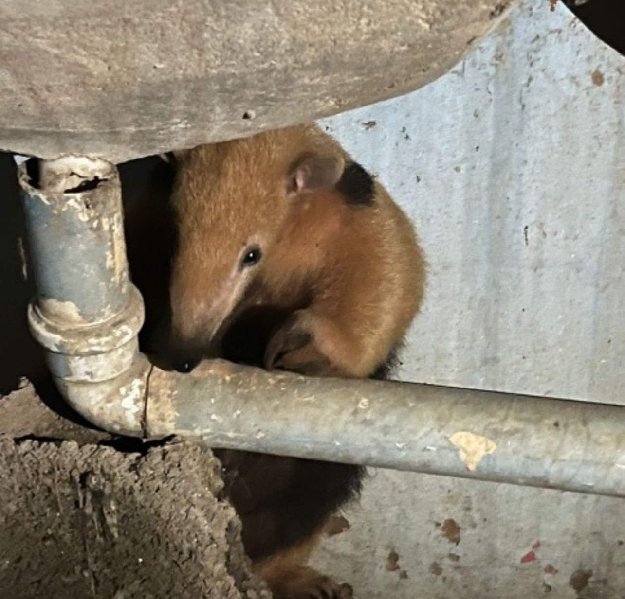 São Gotardo – Corpo de Bombeiros captura tamanduá-mirim escondido em tanque de lavar roupas