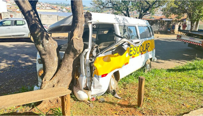 Com o impacto, a Kombi escolar parou sobre o canteiro da avenida, após chocar-se contra uma árvore. Com isso, o condutor de 32 anos, ficou com a perna esquerda presa entre o painel do veículo e o banco do motorista.