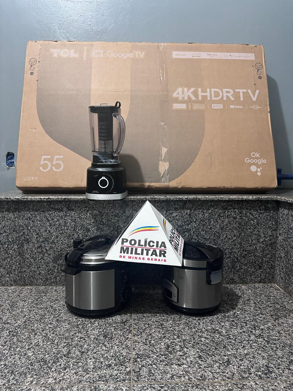Após várias diligências. o suspeito foi identificado e preso em flagrante delito no bairro Boa Esperança. Foram recuperados um liquidificador, uma televisão de 55 polegadas e duas panelas elétricas.