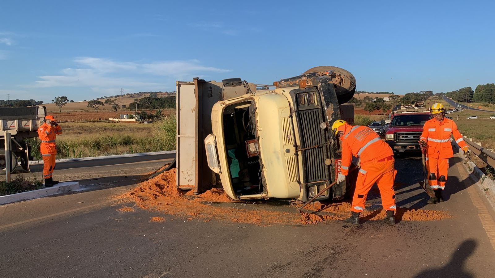 O caminhão caçamba seguia sentido Varjão de Minas a Patos de Minas, carregado com areia. Segundo o próprio motorista, ele foi “fechado” por uma caminhonete, perdeu o controle direcional, bateu no guard-rails do canteiro central e tombou.