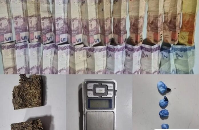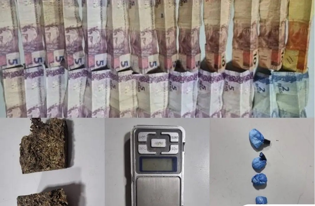 Durante as buscas, os militares encontraram um rapaz, de 22 anos, escondido no quintal da casa. No guarda-roupa do adolescente foram localizados quatro porções de cocaína e no guarda-roupa do irmão dele, de 19 anos, foi encontrada uma balança. Em cima do telhado foram localizados mais dois tabletes de maconha.