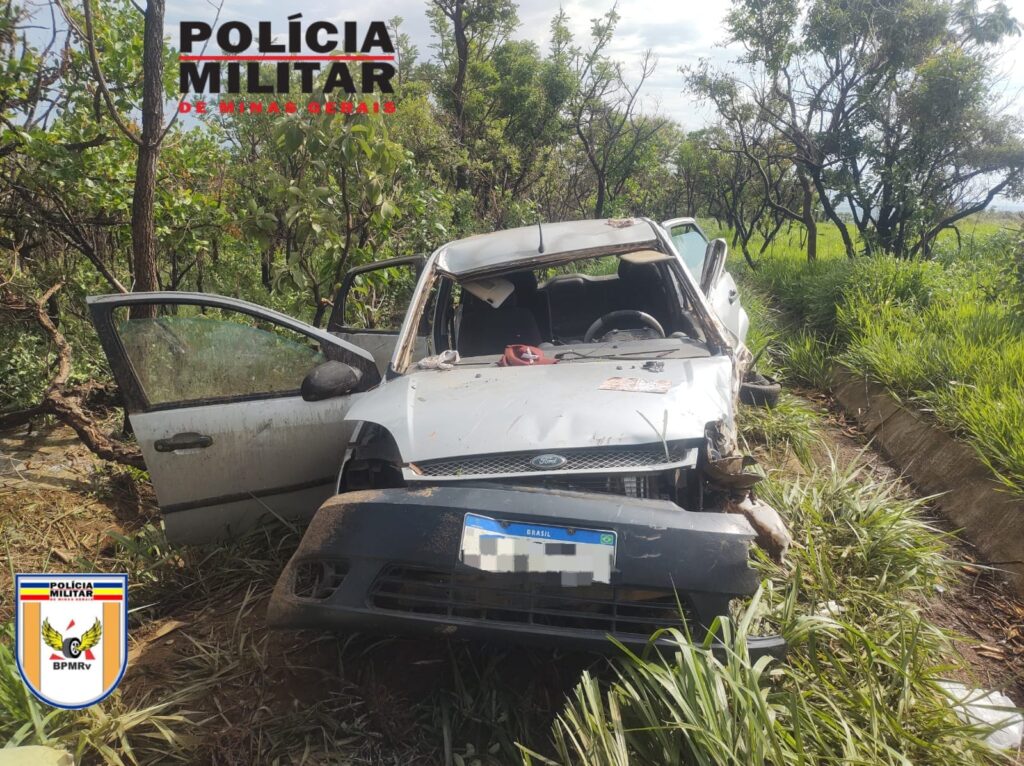 De acordo com a Polícia Militar Rodoviária (PMR), o condutor de 39 anos, do Ford Fiesta, com placas de Araxá, perdeu o controle direcional, saiu da pista e capotou por diversas vezes.
