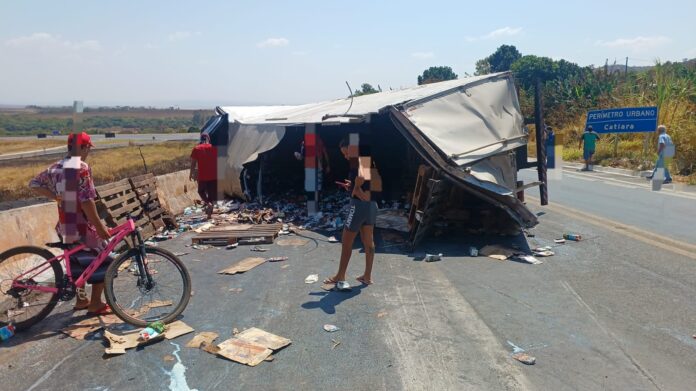 Serra do Salitre – Caminhão carregado com produtos da CEMIL tomba na BR-146 e carga é saqueada