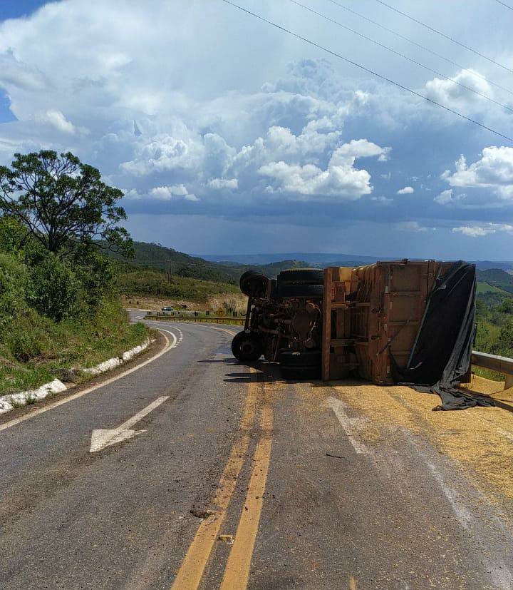 Serra do Salitre – Caminhão tomba e carga fica espalhada na rodovia