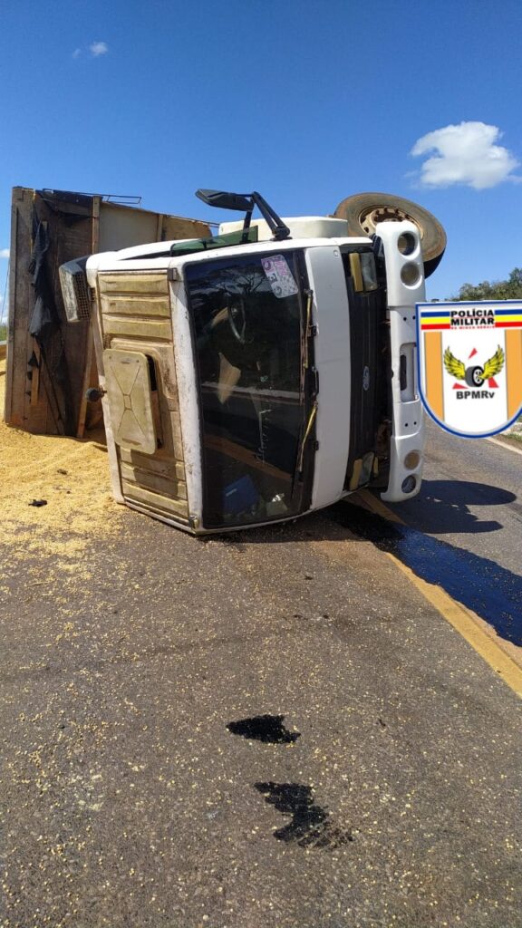 No início da tarde de hoje (1), a Polícia Militar Rodoviária (BPMRv) foi acionada a comparecer na Rodovia MG 230 Km 71, município de Serra do Salitre, onde se encontrava dentro da pista, um caminhão Ford/Cargo tombado e sua carga espalhada dentro da faixa de domínio e na pista de rolamento central.
