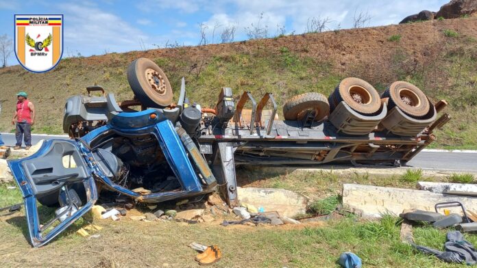 Foi apurado que o Sr. L.R.S. de 46 anos conduzia o caminhão FORD/CARGO 2629 6X4, carregado com 13 toneladas de sementes de soja, no sentido Serra do Salitre para Araxá, quando na descida da serra, local em declive e curvas sinuosas, perdeu o controle direcional, vindo a tombar obstruindo parcialmente a pista de rolamento da rodovia.