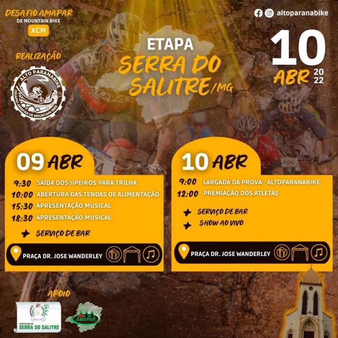 Dois dias de programação para todos os públicos. O Desafio Amapar de Mountain Bike promete movimentar Serra do Salitre neste final de semana com uma programação que reúne esporte, aventura, apresentações culturais, gastronomia e muito mais.