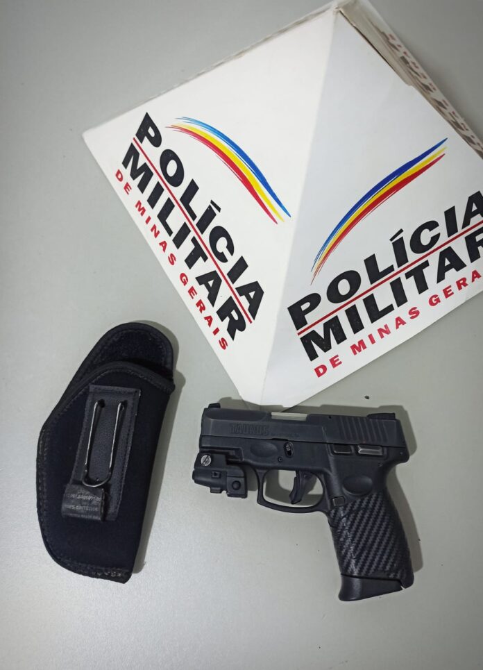 O suspeito teria levantado a camiseta com uma das mãos e mostrado de forma ostensiva uma arma de fogo tipo pistola, acoplada no coldre na região da cintura.
