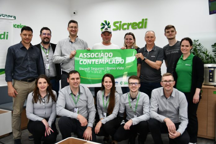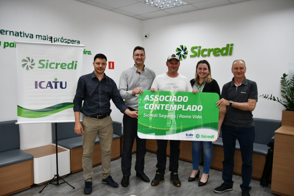 O associado foi surpreendido com a boa notícia na Agência, com a presença do presidente da Cooperativa, Sérgio Luiz Tonello; do gerente local, Adriano Sbabo; do representante da Icatu Seguros, Vinícius Raguzoni Müller; e da equipe de colaboradores.