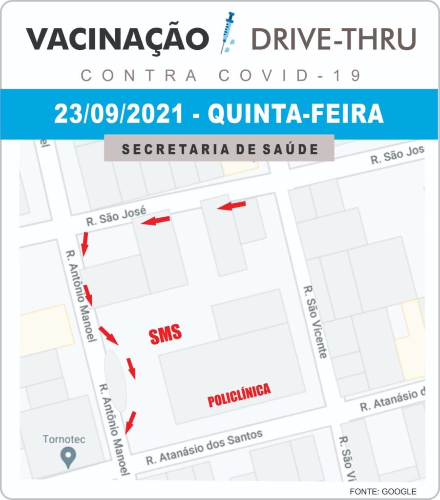 A vacinação pelo sistema Drive-Thru, além de permitir agilidade no processo, previne filas a aglomeração de pessoas. Todos os protocolos de segurança serão tomados, cada profissional responsável pela aplicação das vacinas estará adotando as devidas medidas preventivas contra a COVID-19.