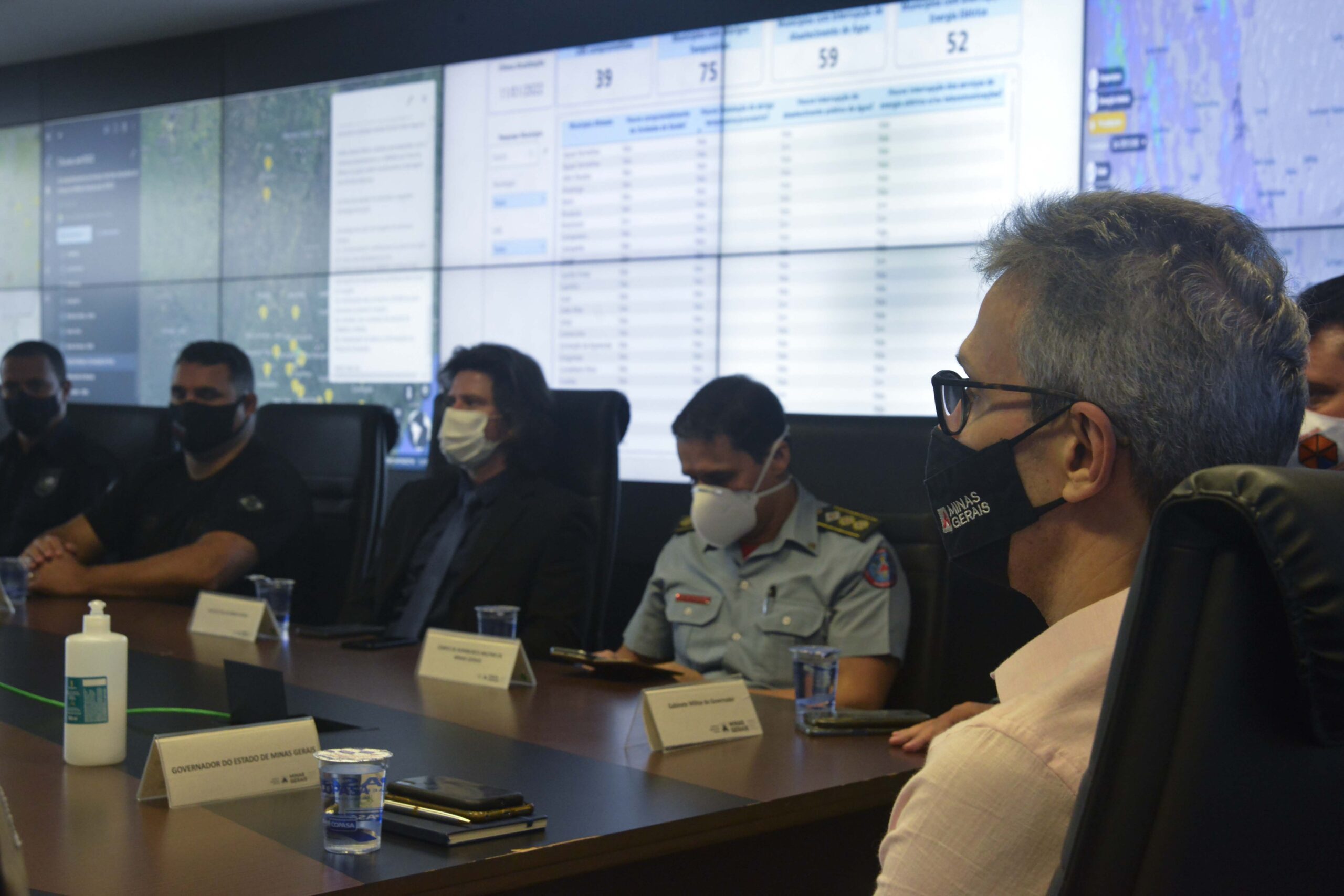 Nesta manhã, o governador Romeu Zema se reuniu com o Comitê Gestor de Medidas de Prevenção e Enfrentamento das Consequências do Período Chuvoso, no Centro Integrado de Comando e Controle (CICC), na Cidade Administrativa, e acompanhou as ações de prevenção e ajuda direta à população que estão sendo desenvolvidas pelas Forças de Segurança.
