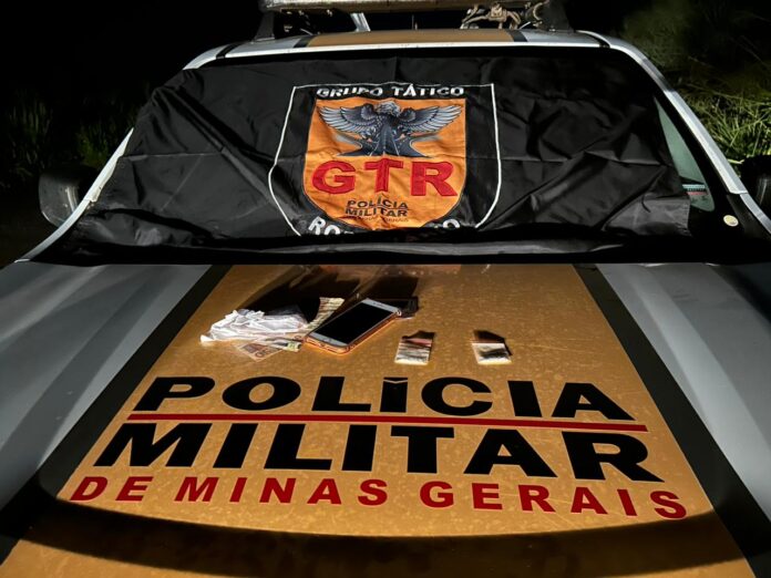 Durante policiamento de trânsito rodoviário, na altura do km 192 da rodovia BR-354, no município de Lagoa Formosa, a Polícia Militar flagrou o exato momento em que um motociclista de 19 anos entregava dois papelotes de cocaína para um indivíduo de 33 anos, no acostamento da rodovia.