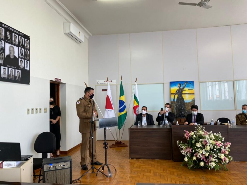 A cerimônia foi presidida pelo Excelentíssimo Juiz Dr. Denes Marcos Vieira sendo a medalha entregue ao agraciado seguido de homenagens.
