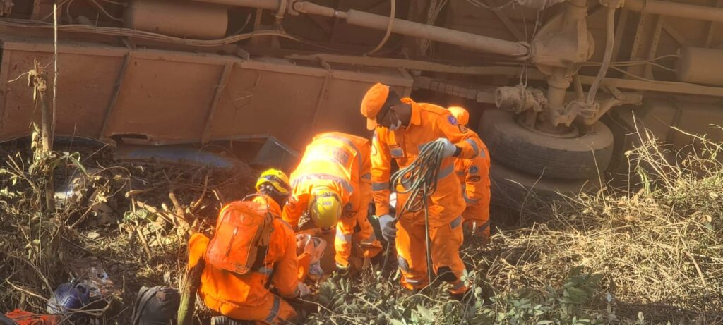 Na manhã desta quinta-feira (25), por volta das 08h00, duas equipes de Resgate e uma equipe de Salvamento da Segunda Companhia do Corpo de Bombeiros Militar de Araxá foram acionadas para atender a um grave acidente envolvendo o tombamento de um ônibus que transportava trabalhadores rurais. O incidente ocorreu em uma curva de uma estrada de terra, próximo ao Km 715 da BR-262, a cerca de 21 km da cidade de Araxá.