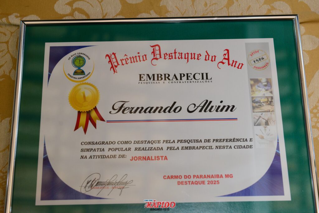 Na noite desta sexta-feira (17), Carmo do Paranaíba foi palco da entrega dos certificados de “Melhores do Ano”, em um evento promovido pela Empresa de Pesquisa Embrapecil. A cerimônia foi realizada no Restaurante Panorâmico da BR-354 e reuniu empresários, profissionais e representantes de diversos segmentos que se destacaram ao longo do último ano.