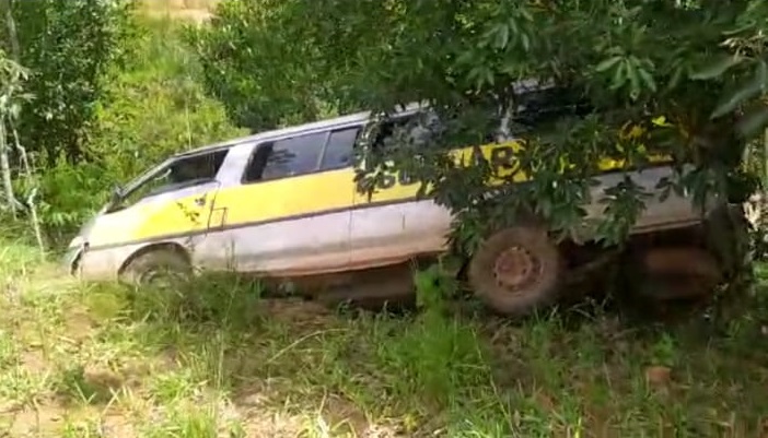 Nesta sexta-feira (24/02) um veículo escolar ficou preso entre árvores, próximo a um barranco numa estrada rural de Presidente Olegário, após o motorista, um homem de 54 anos, perder o controle e descer em marcha ré na estrada de terra.