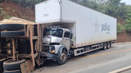 De acordo com informações, por volta das 5h30, o reboque da carreta tombou ao passar por uma curva na rodovia. Logo em seguida, um caminhão que seguia no mesmo sentido de circulação, não conseguiu frear a tempo e acabou colidindo contra o reboque tombado na pista.