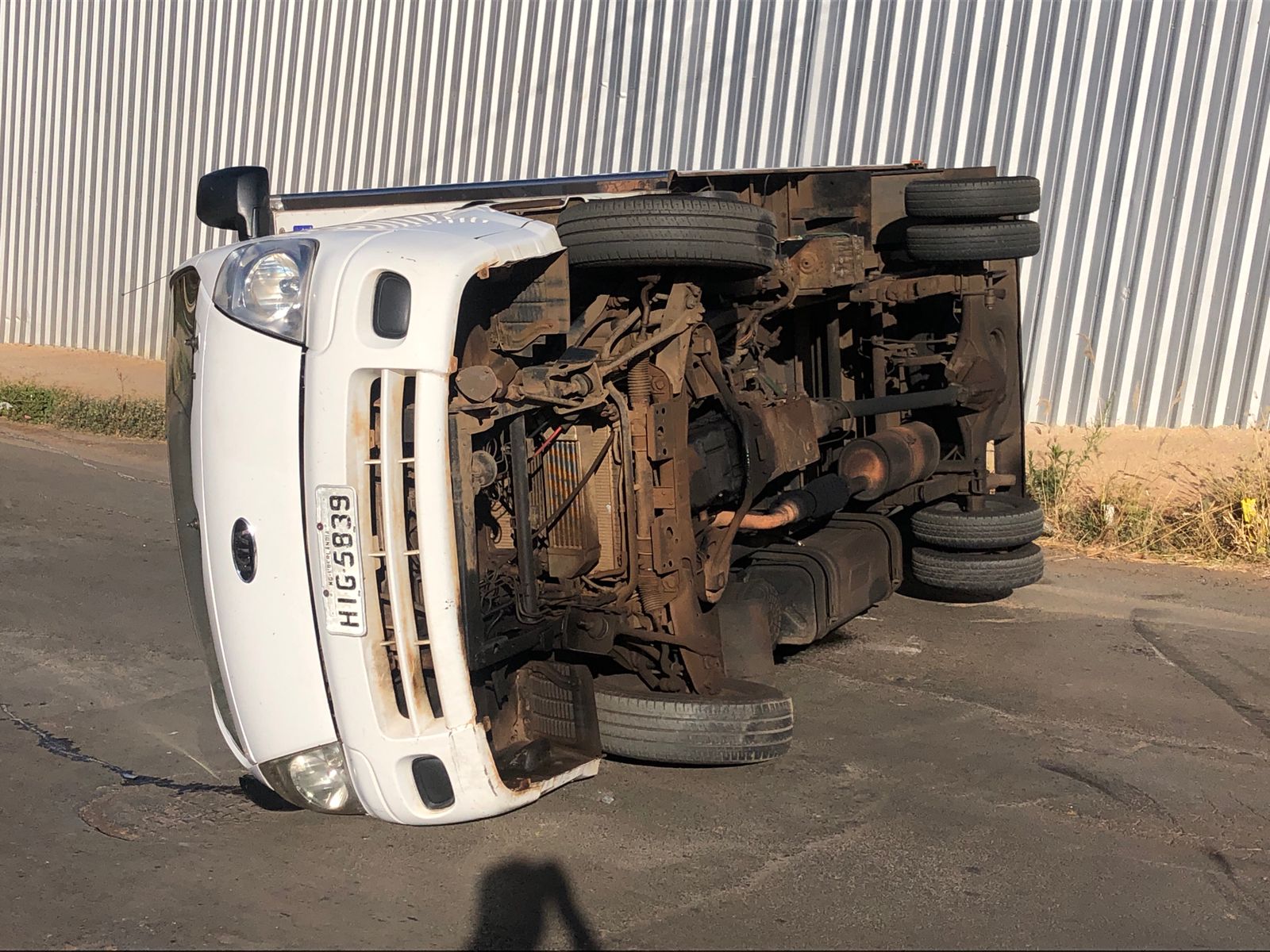Veículo carregado de açaí congelado tomba no Bairro Cônego Getúlio em Patos de Minas