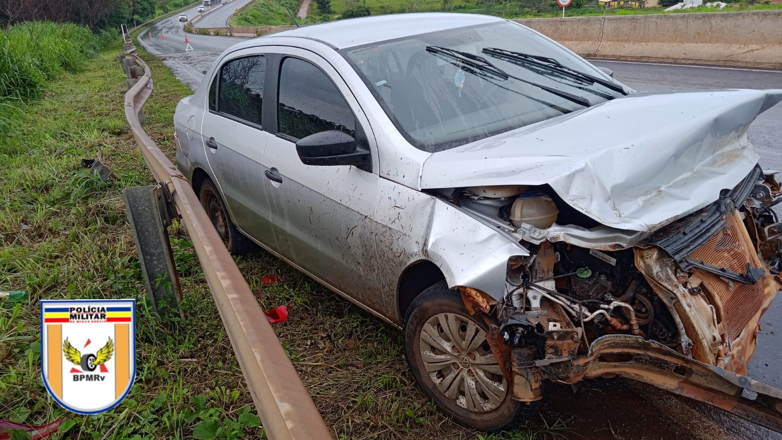 A condutora relatou aos militares que conduzia o carro VW/Novo Voyage na rodovia sentido Patos de Minas a Lagoa Formosa, acompanhada de seus filhos, e que chovia bastante.