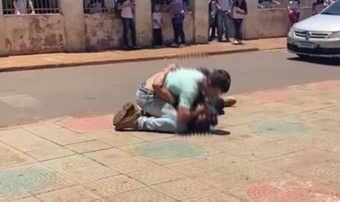 Um estudante de 15 anos foi agredido por um motorista durante uma confusão no trânsito, em frente a uma escola, na cidade de Lagoa Formosa. Um vídeo que está circulando nas redes sociais mostra o condutor do veículo em cima do adolescente que estava caído no calçadão da Praça Nossa Senhora da Piedade.