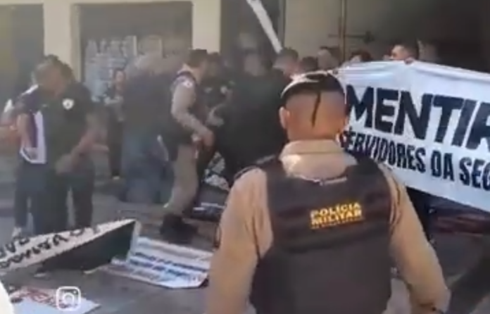 O grupo levou faixas acusando Zema de “destruir a segurança pública pagando os piores salários”. O protesto ocorreu na porta de um prédio onde Zema participava de um evento na região central de Belo Horizonte. Veja o vídeo